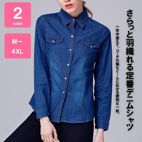 デニムシャツ ダンガリーシャツ レディース 秋冬 大きいサイズ ネイビー 長袖 カジュアル トップス ライトデニム 4xl 3xl 24u Simps Onlineshop 通販 Yahoo ショッピング