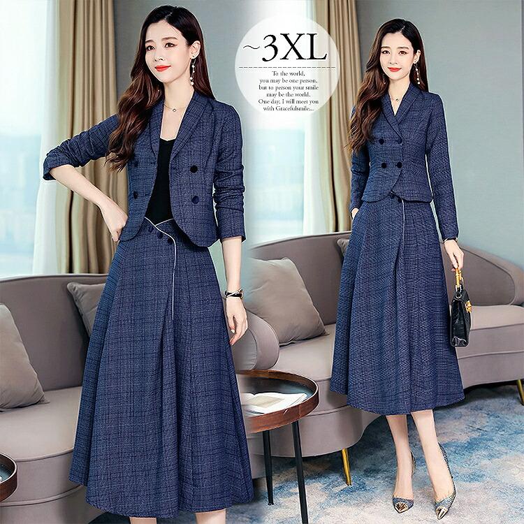 全品pアップ中 スーツセット スカートスーツ ロング 大人 レディース 大きいサイズ きれいめ ネイビー チェック 開襟 ダブル ボタン 長袖 冬 Ecs79 Ecs79 ライバルはデパートgracefulsmile 通販 Yahoo ショッピング